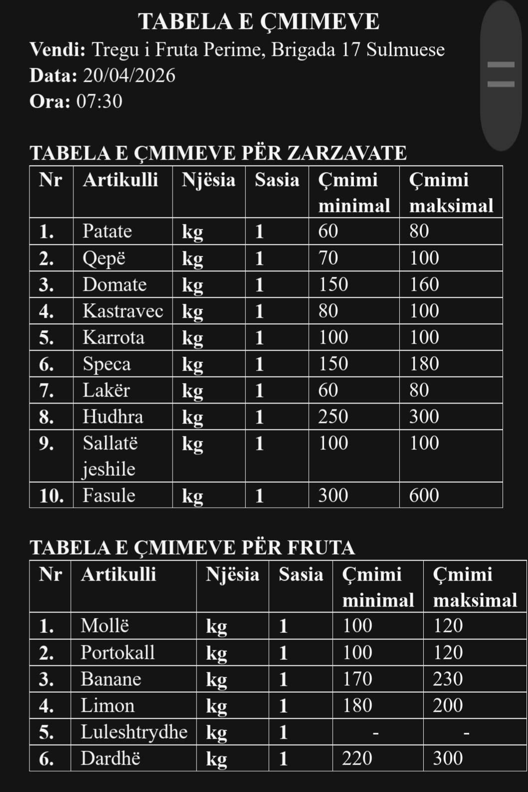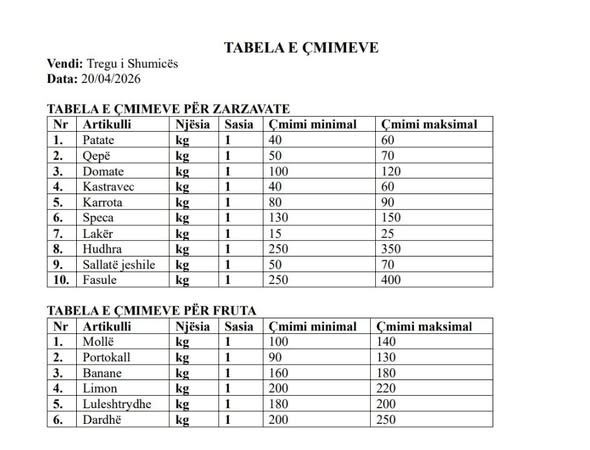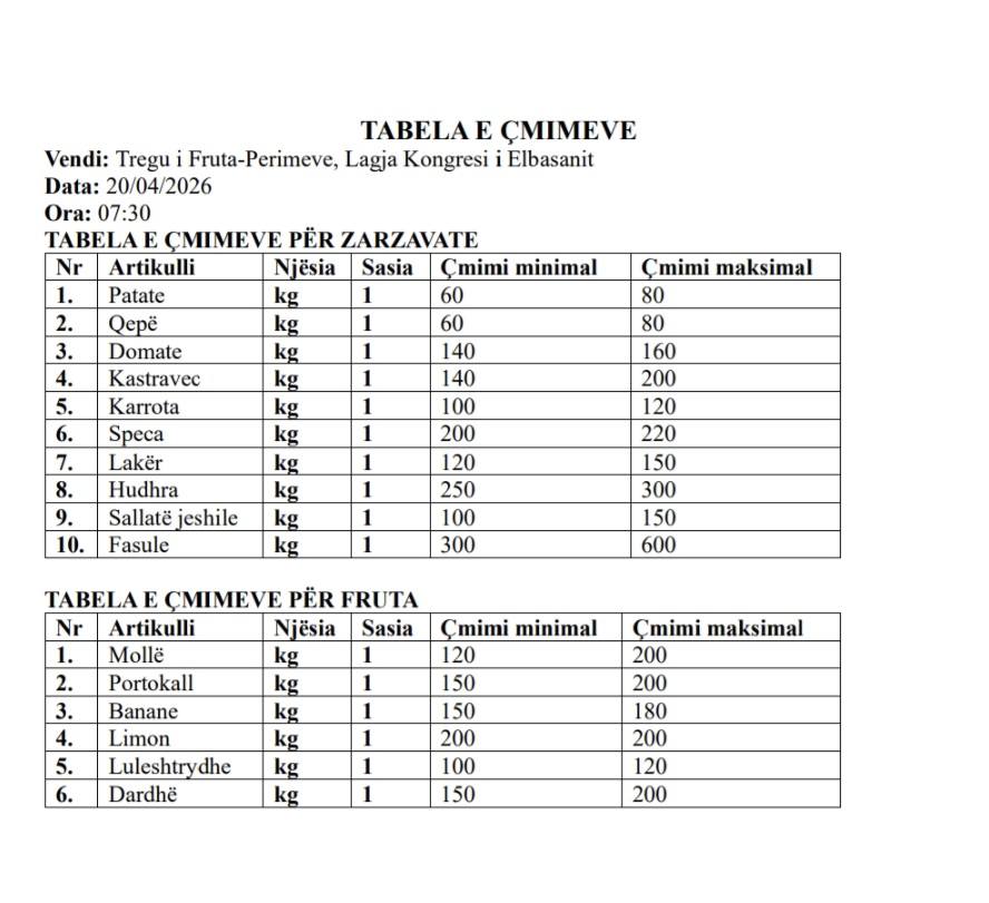 Monitorim i çmimeve në tregjet e Elbasanit për mbrojtjen e konsumatorit.