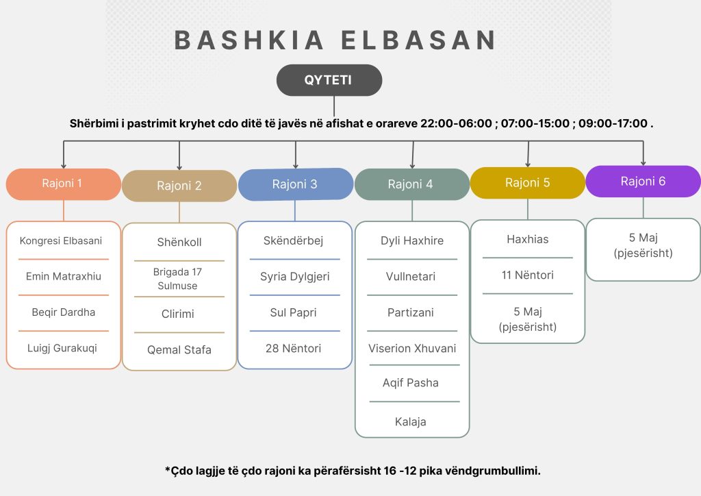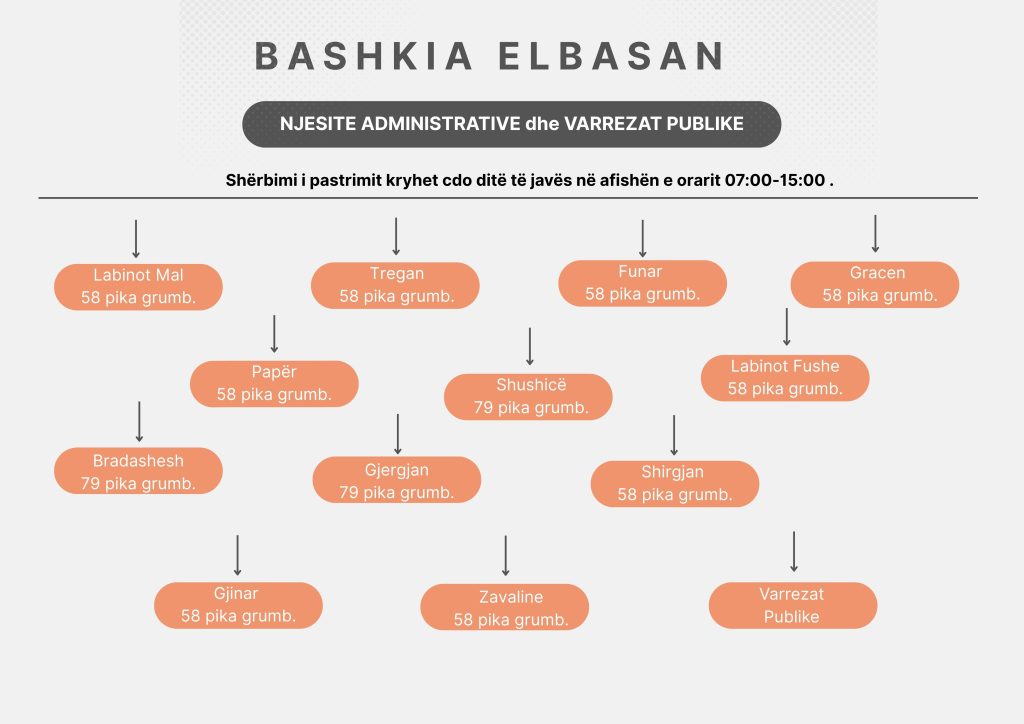 Oraret e pastrimit të Qytetit dhe Njësive Administrative